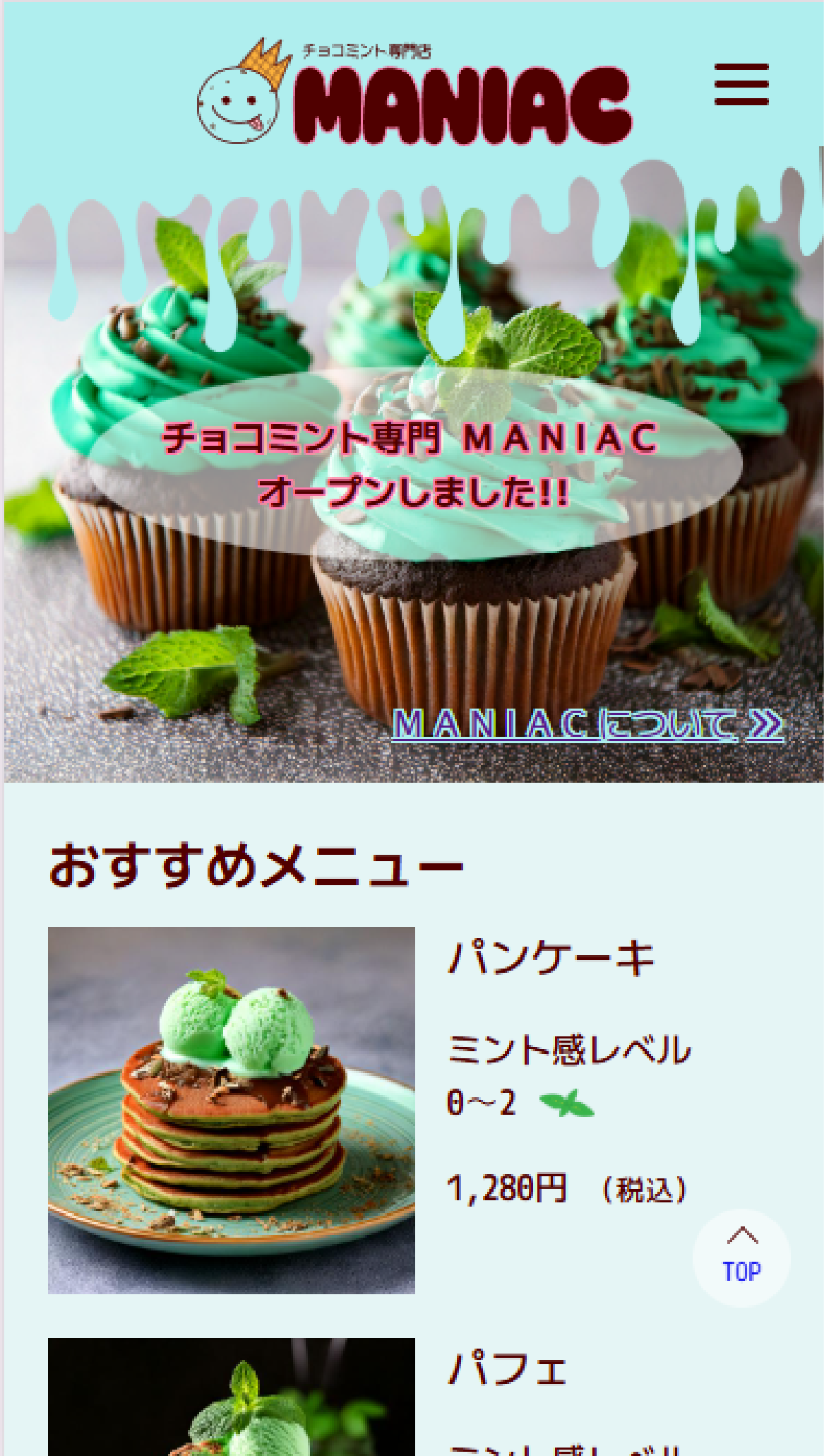 サイト全体もチョコミントカラーにしお店の雰囲気をわかりやすく表現し、今後ロゴを使用した商品も増やせるようにポップなロゴにました。